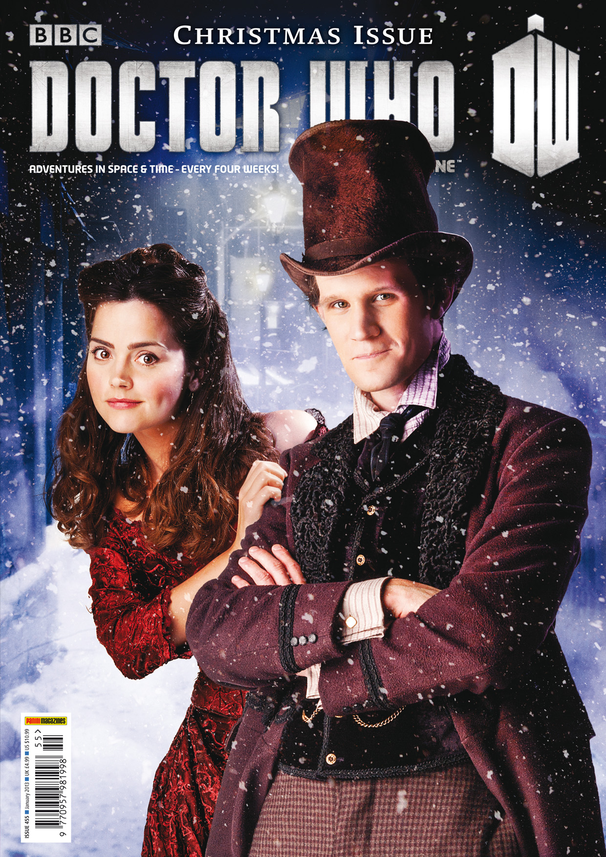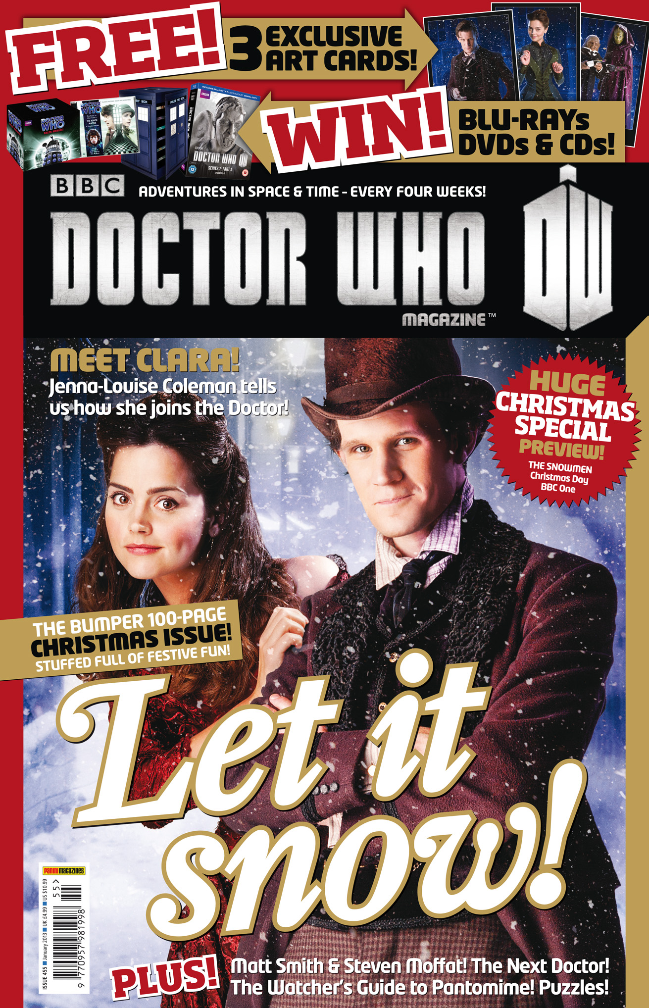 The latest Christmas Special, The Snowmen, is extensively previewed, featuring new photos from the adventure, and revealing hints from writer Steven Moffat and producer Marcus Wilson. Plus, new sidekick Jenna-Louise Coleman tells the magazine of her role: