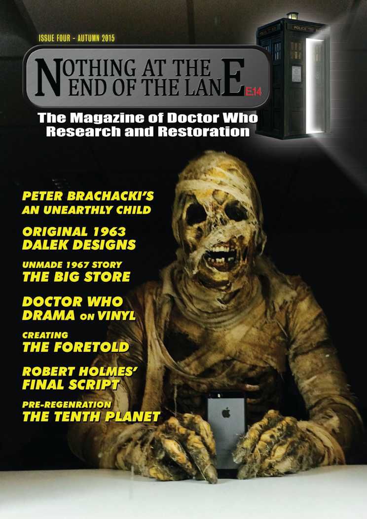 - An Unearthly Studio: With the aid of existing archival material, Philip Newman examines in detail Peter Brachacki’s production design for the very first episode, An Unearthly Child and how things were subtly changed between the original pilot and the final recording several weeks later. The article is illustrated with CG recreations of the original studio layout by Rob Semenoff.