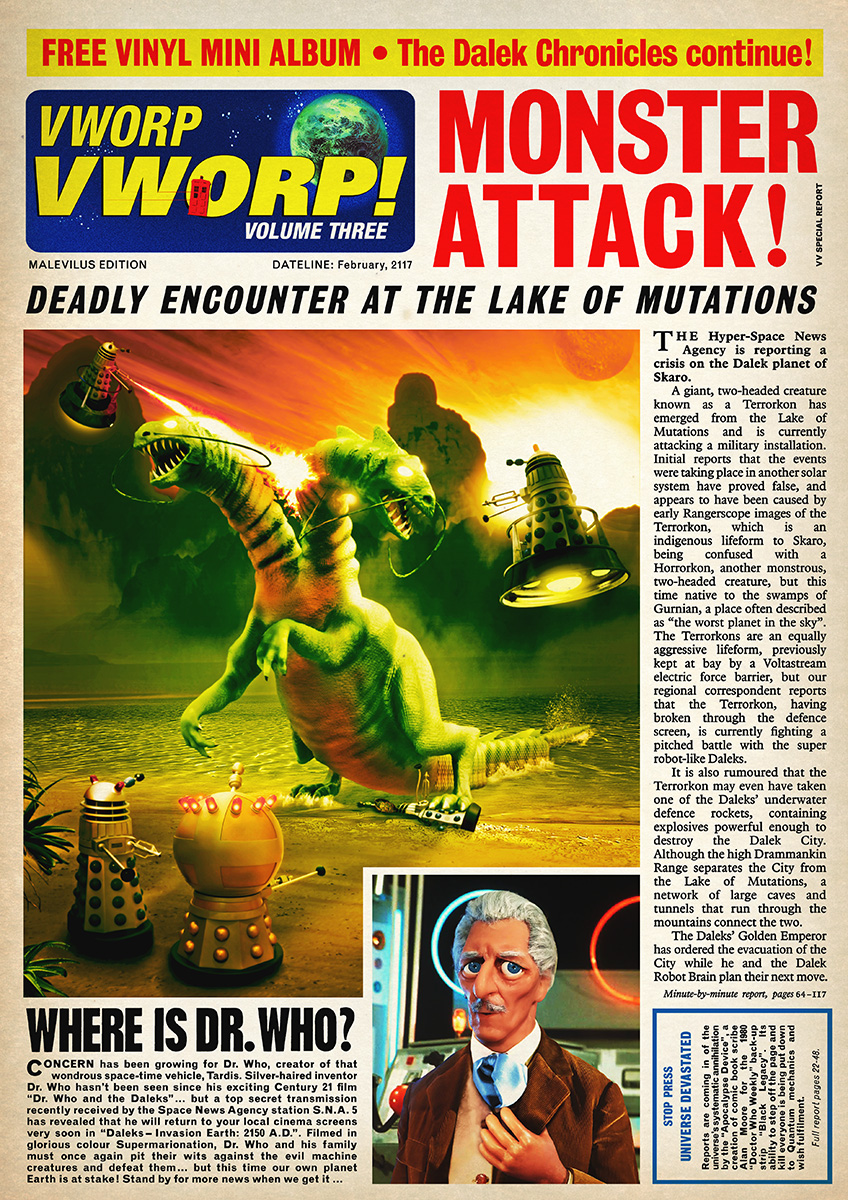 The Third Doctor’s Earth-bound exile has been lifted. But before he can set out on new adventures, an alien invasion appears to threaten Earth! It’s the devious work of an old enemy, Salamander, a former dictator with a startling resemblance to the Second Doctor! Now, forming an uneasy alliance with the Master, the Doctor and UNIT set out to stop him – but are they too late to stop his plans as he takes them all back into the past.