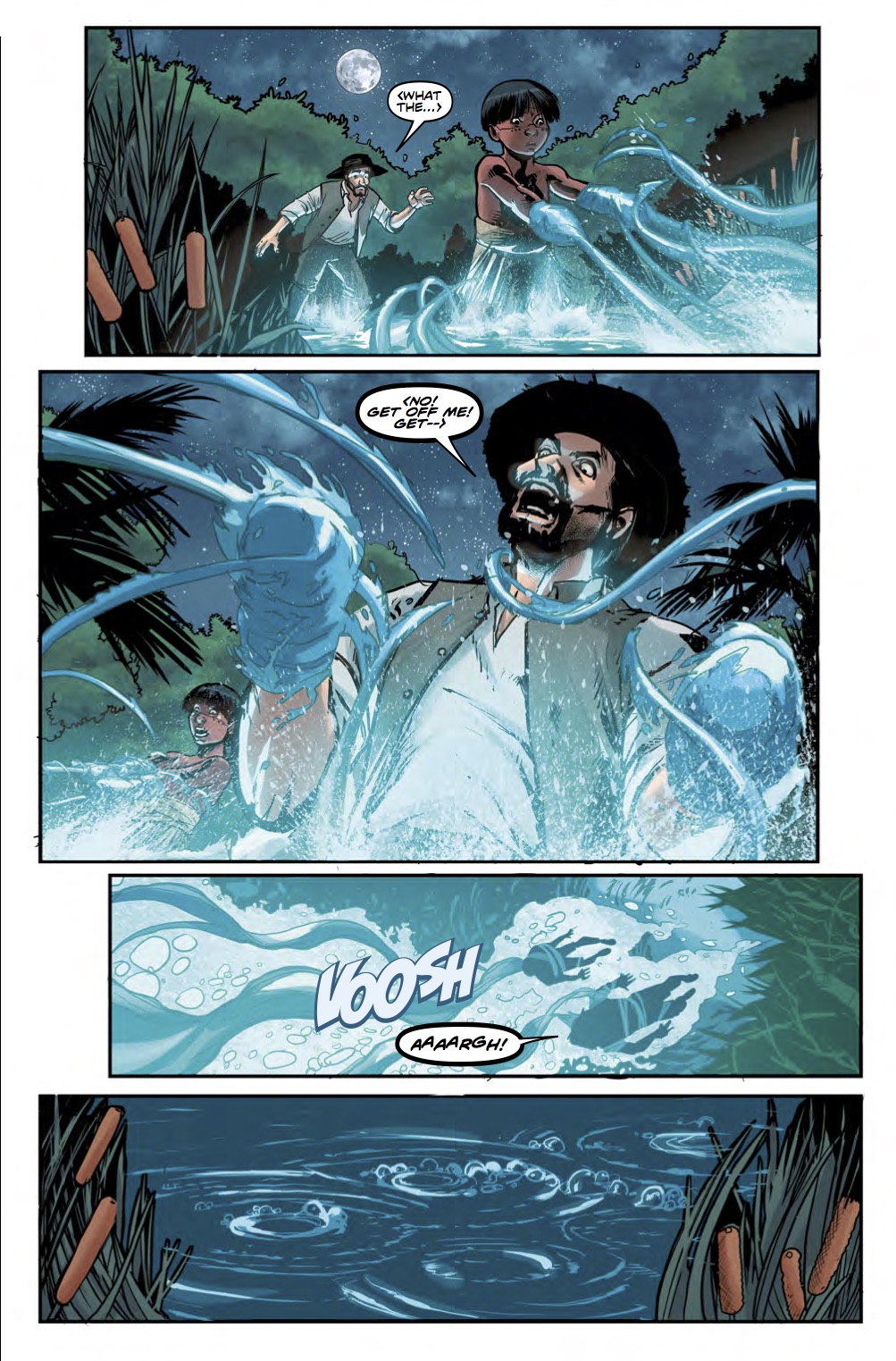 The Ninth Doctor, Rose, and Jack head to Brazil on the next stop of their transtemporal mystery tour. The Iara have long been thought a Brazilian myth, but when these unearthly mercreatures prove to be aquatic aliens making an unscheduled stop on planet Earth, the TARDIS team must establish their intentions and broker peace across the water barrier...!