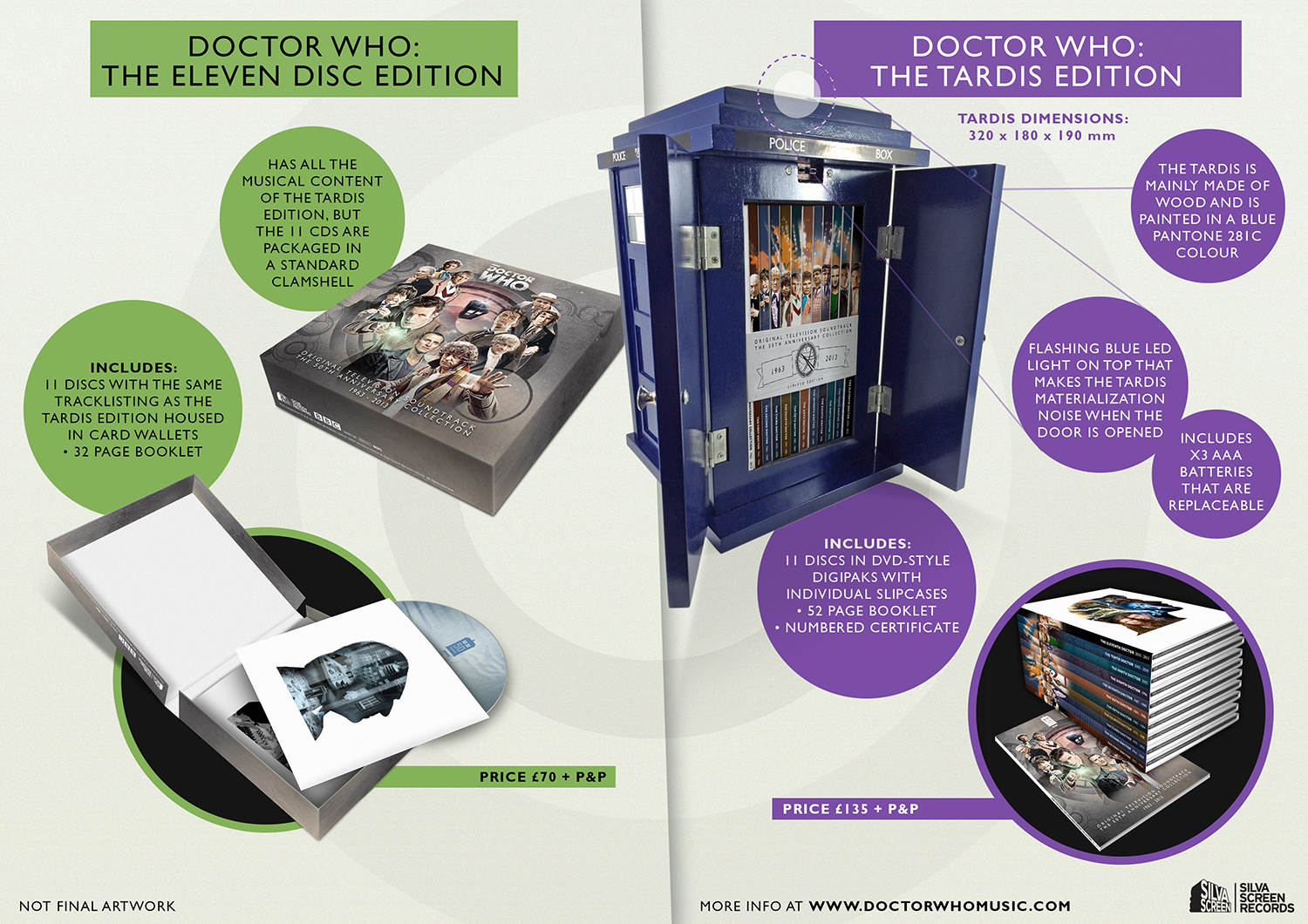 The set is available in two formats, a 'standard' Eleven Disc Edition and a special TARDIS Edition; Silva-Screen have now provided a handy guide to the differences between the two versions of the release: