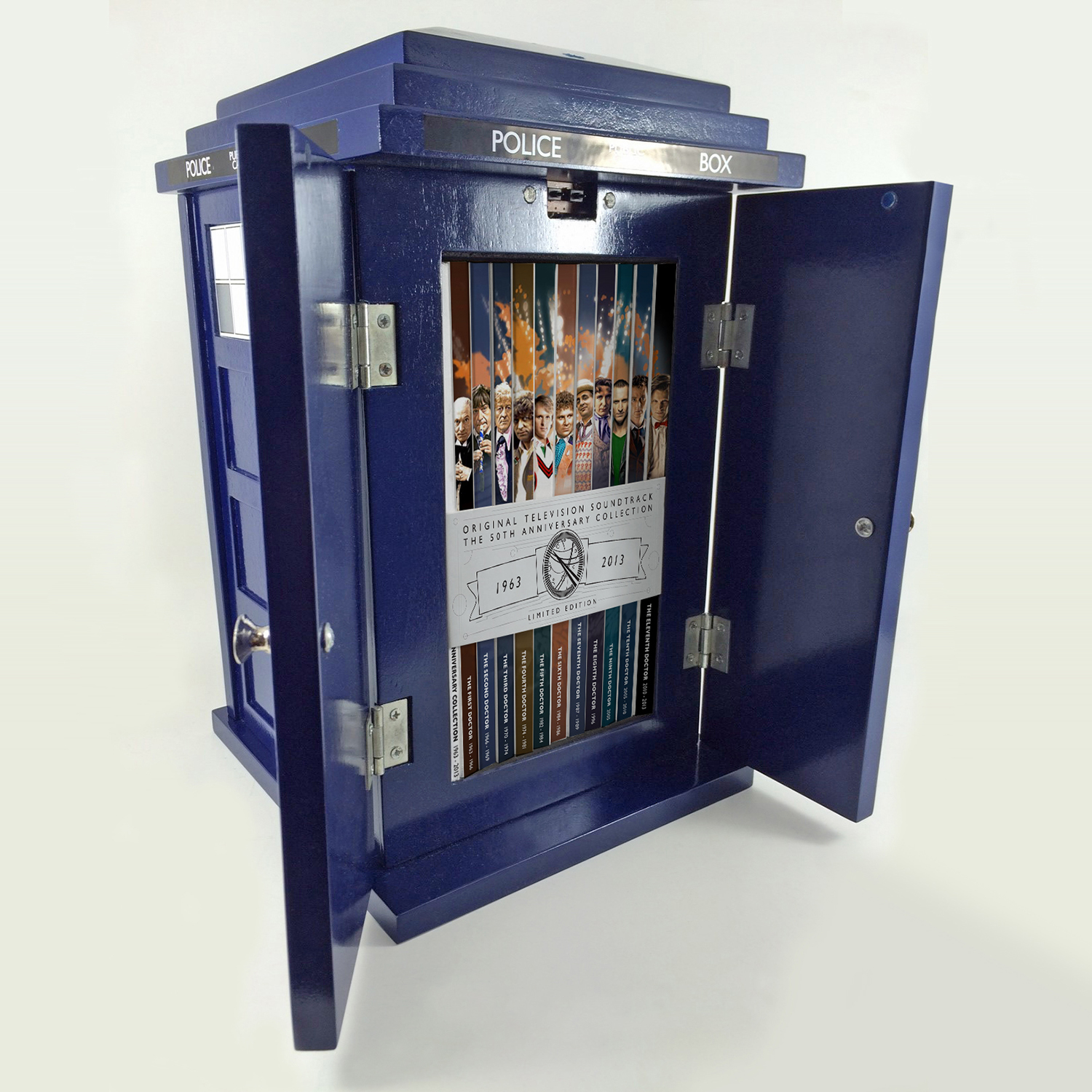 50th Anniversary Collection: TARDIS Edition (closed) (Credit: Silva Screen) 50th Anniversary Collection: TARDIS Edition (open) (Credit: Silva Screen) 50th Anniversary Collection: CD Edition (open) (Credit: Silva Screen) 50th Anniversary Collection: CD Edition (closed) (Credit: http://www.doctorwhomusic.com/)