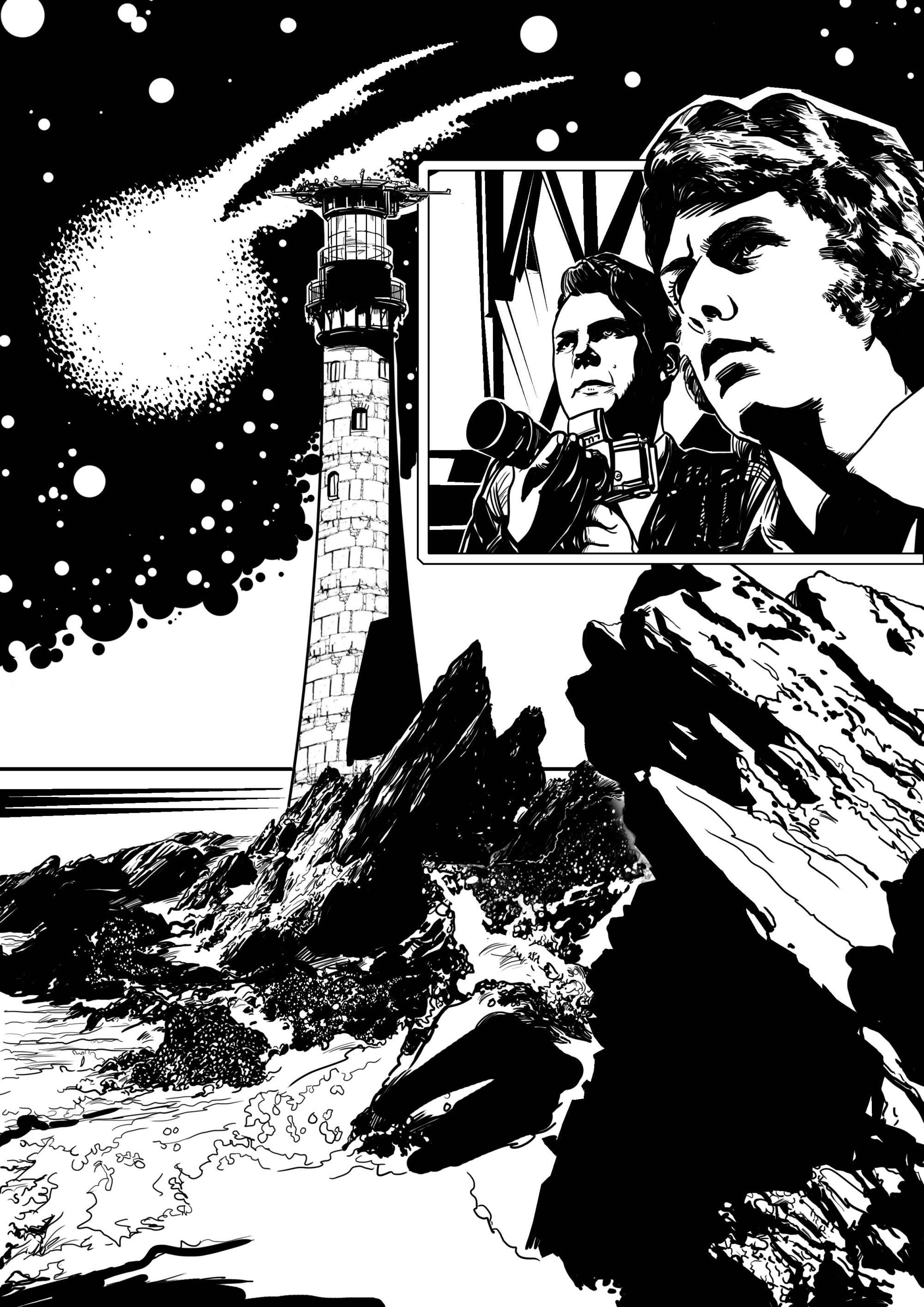 Shaun wanted me to read the book and choose my own sequences to illustrate. In my opinion the TV version of Horror of Fang Rock is a tightly written atmospheric story, but due to television budgets it’s not as visual interesting as it could have been. I wanted to evoke a similar kind of atmosphere as the brilliant Ridley Scott TV series, The Terror.