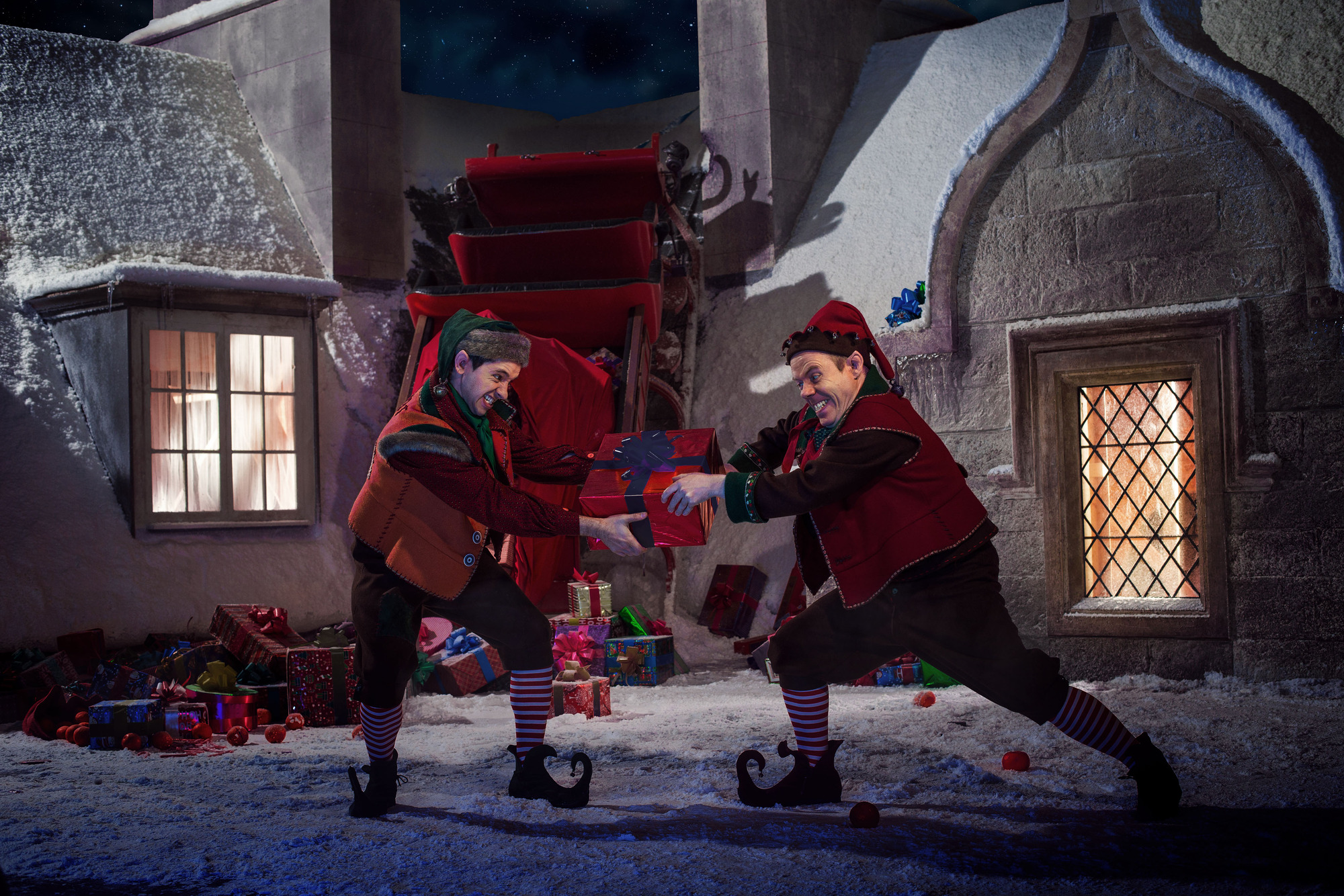 It’s fairly fractious. They take any chance they can to undermine him in front of people, and it makes Santa very cross but at the same time he’s very protective. I’m not sure if they’re his sons or not? What’s the relationship between the elves and Santa Claus? Are they just friends or are they just employees? Is there some kind of blood line? I’m not sure…