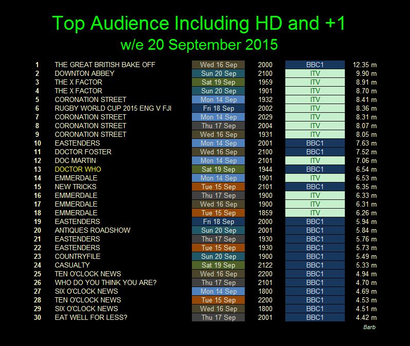 The rating issued by the Broadcasters' Audience Research Board, or BARB, includes all those who watched the programme within one week of transmission.
