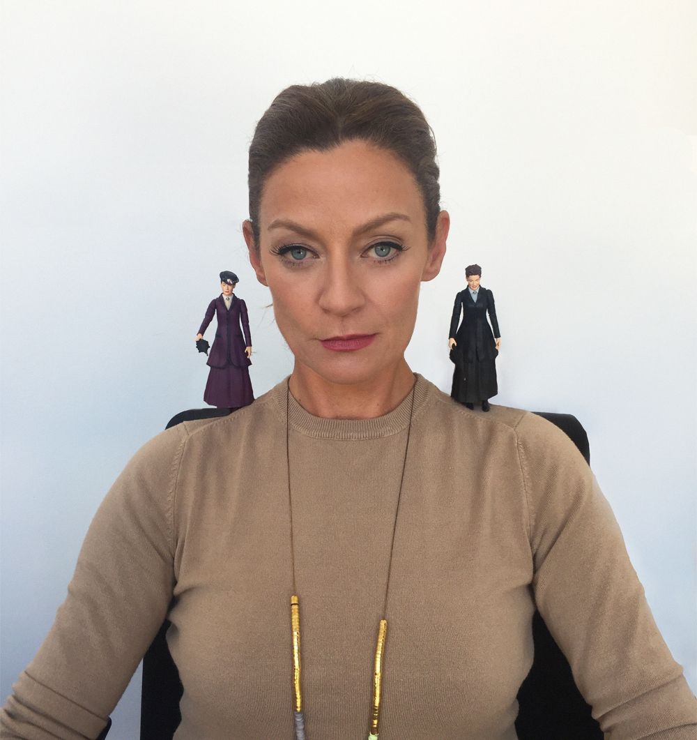 Following the launch of Character Options’ double helping of Exclusive Doctor Who Missy Figures last week, the actress who plays Missy, Michelle Gomez, has been photographed with her miniature alter egos.